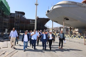عقب ذلك وبانتهاء مراسم تدشين القاطرتين، تفقد الفريق أسامة ربيع رئيس الهيئة أعمال بناء سفن الصيد أعالي بحار للتعرف على سير العمل حيث تم الانتهاء من تجميع الأجزاء المعدنية المكونة لبدن ٣ سفن صيد فيما يجري العمل حاليا على تجميع سفينة الصيد الرابعة وذلك من إجمالي ١٢ سفينة صيد مماثلة لسفينة الصيد “رزق ١” سيتم بناؤهم تباعا.